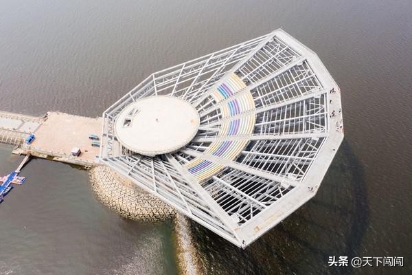 沿著山海大道一直西行,幾分鐘后,就會來到鲅魚圈山海廣場的入口處。貝殼觀景臺是一個帶有廣場和舞臺,并且是像一面大扇子一樣。