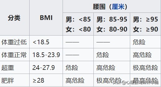 在中國大陸官方發布的《中國成人超重和肥胖癥預防控制指南》所認定的體重腰圍的適宜值及其與相關疾病的關系為