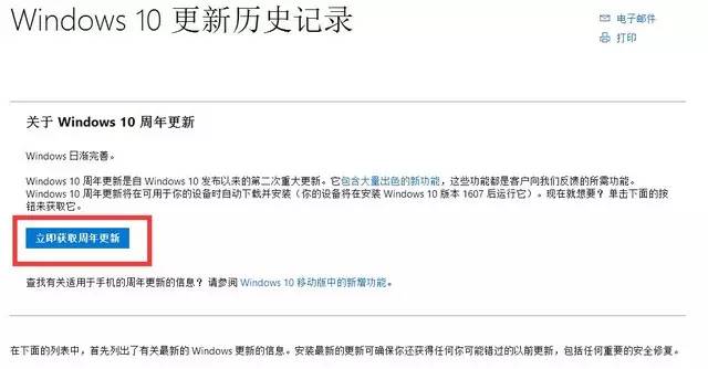 【更新和安全】→【了解更多信息】→【立即獲取周年更新】