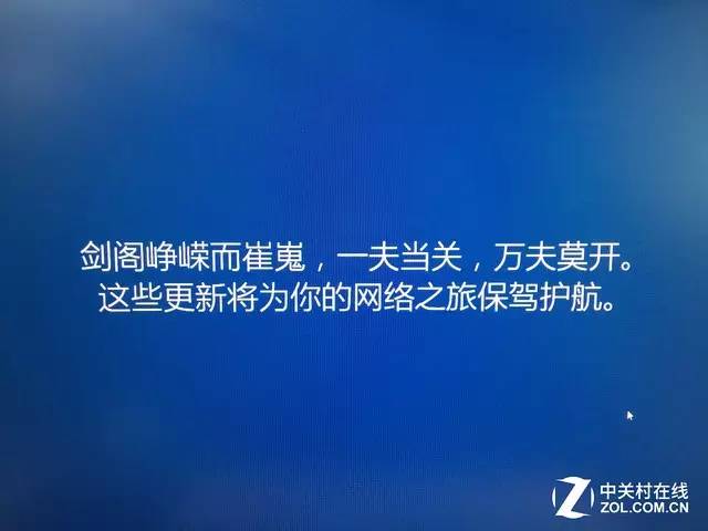 這次WIN10一周年更新依舊保持了“文青氣質”,在進入桌面前的設置時間,屏幕上會不斷彈出古文詩詞。雖然看似有些天南海北不搭界,但其實每句都搭配著WIN10這次一周年更新的新特性,只是有些比較隱晦難懂,在一兩分鐘的時間玩家也難琢磨到。