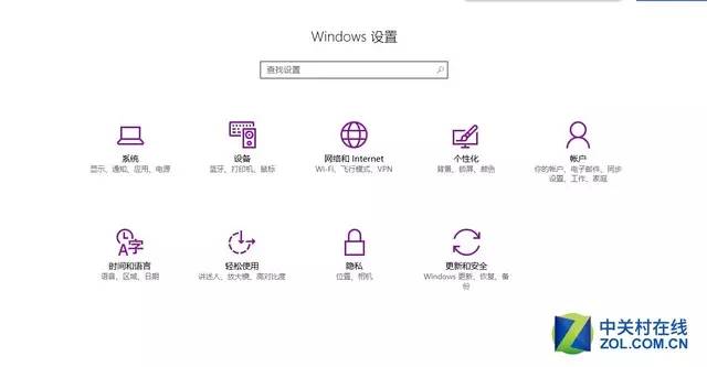 原本任務欄的一些設置被挪近了整體的設置系統中,讓用戶可以更加方便的進行操作。除此之外,在設置中心中比較明顯的一點就是【查找設置】的位置改變,原本WIN10的這一功能統一存在于右上角,很多用戶自始至終都不知道這個功能的存在,而現在【查找設置】會出現在最明顯的位置,這也是非常人性化的改變。
