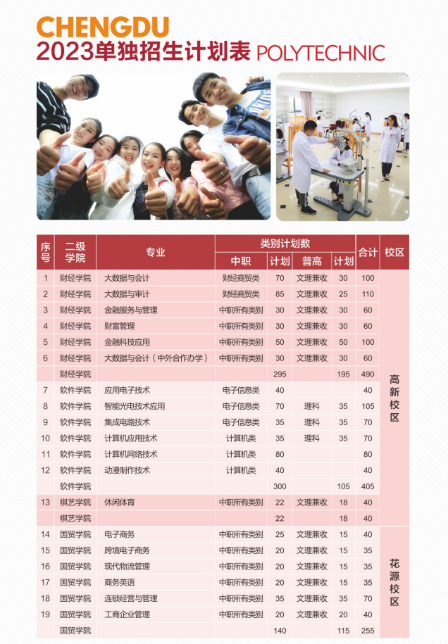 2023年,為更好地服務高校、服務考生和家長,讓考生和家長了解高校辦學條件、招生政策、專業設置、招生計劃、錄取查詢等信息,《成都職教》編輯部繼續推出“高職單招好大學”專欄,幫助考生更加科學、合理地填報學校和專業,為單招學子上岸助力護航。