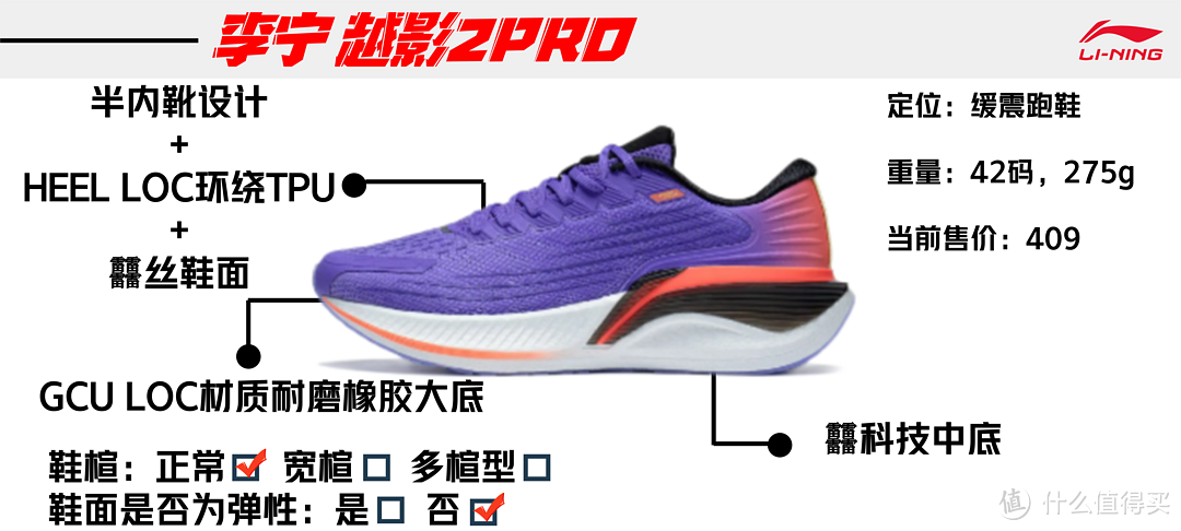 李寧越影2PRO是一雙兼顧了緩震和穩定性的舒適慢跑鞋,全掌?科技泡舒適緩震,穩定十足,對于各體重跑者都是非常不錯的選擇,對于體重跑者格外友好,性價比極高。