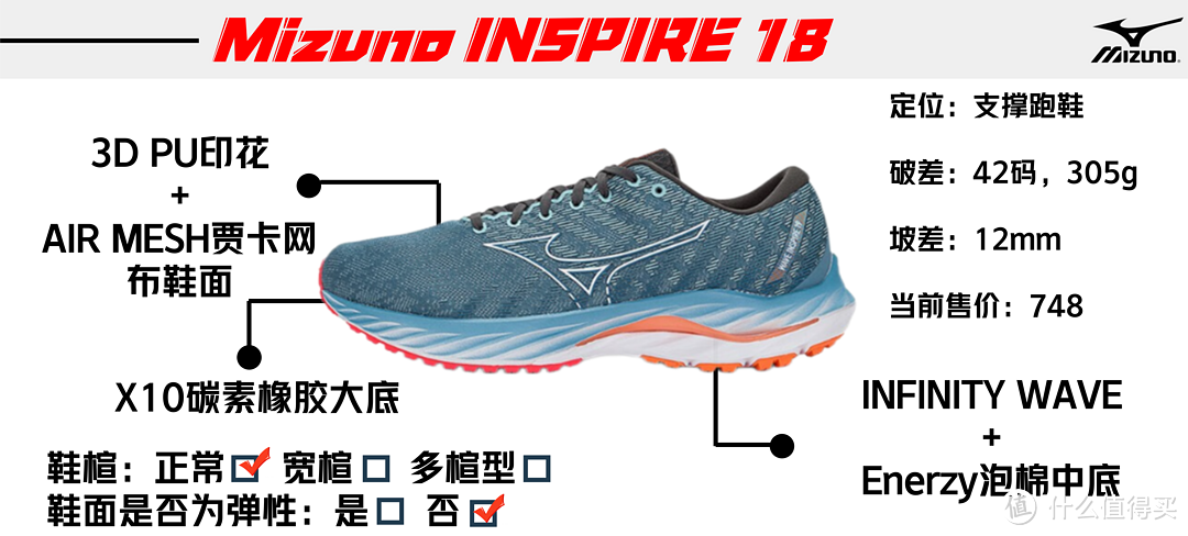 inspire18采用了和rider26相同的外形構造和中底配置,但在中足處設置了wave上翻設計,加強了足弓支撐,跑者們可以根據實際需求進行選擇。