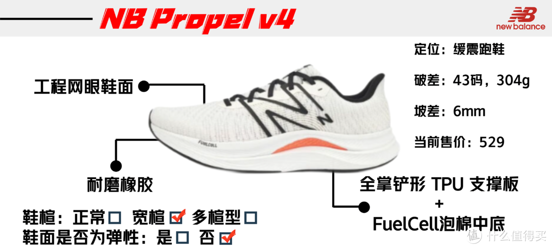 nb propel v4是一雙我非常喜歡的綜訓跑鞋,滾動感和穩定性都非常出色,對于體重略微偏大的跑者也是非常適合。