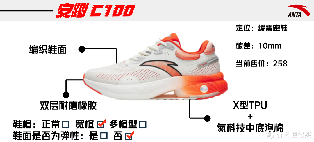 在實際體驗中,C100的中底腳感算不上軟彈,反而偏韌,個人感覺對于中小體重跑者來說并不是特別友好。但是對于大體重跑者來說,穩定的中底泡棉搭配韌性的腳感展現出出色的動態穩定性。