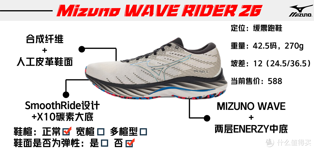 鞋面舒適透氣,穩定包裹。中底也升級為全掌Enerzy泡棉,腳感更加輕質軟彈,上翻的wave波浪片在中足內側形成了有效的支撐,對于初跑者和大體重跑者都更加友好。