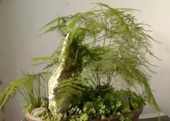 1、文竹枝莖柔弱,需要在定植籃里裝上陶粒來固定。水位剛剛過瓶子的2/3就可以。