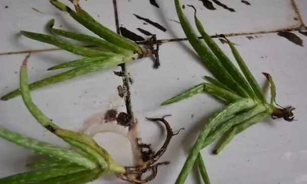 1、首先把蘆薈從原先的盆中脫出,注意不要弄傷新鮮幼嫩的白色根系。把老根和爛根剪掉。