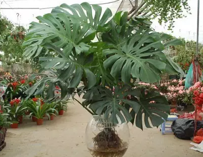 1、小型龜背竹更適合水培,這樣的在水中生根快,而且更好固定。將土培龜背竹根系的泥土洗凈,稍加修剪,去掉老根弱根。