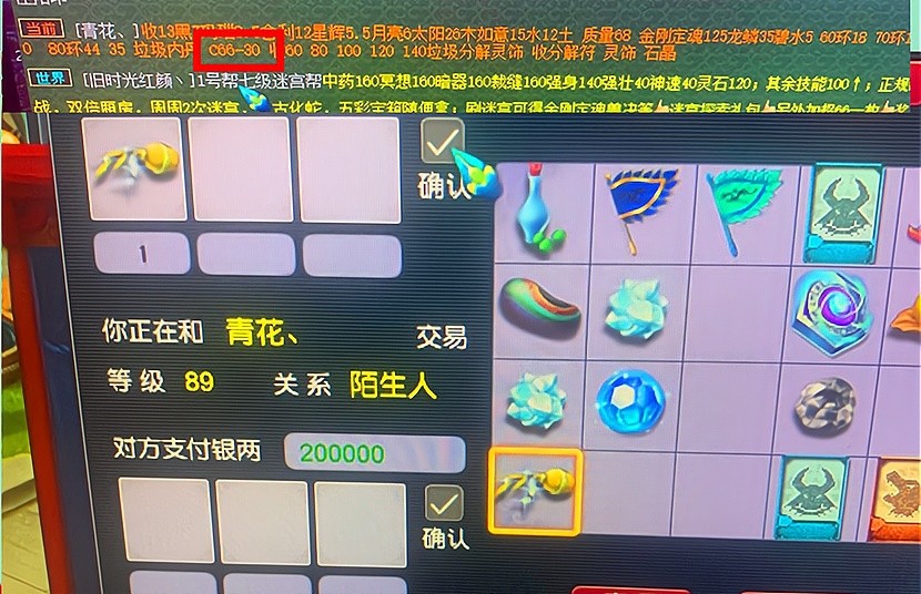 小編相信大家在夢幻中把東西賣給商人的時候應該經常會碰到上面的這種情況,上面這位玩家表示,他看著商人喊話收購超級金柳露時的價格明明是30萬的夢幻幣,結果真正交易時對方卻只給了20萬的夢幻幣,硬生生的少了30%多的夢幻幣,這樣的人就是夢幻西游中的黑商。
