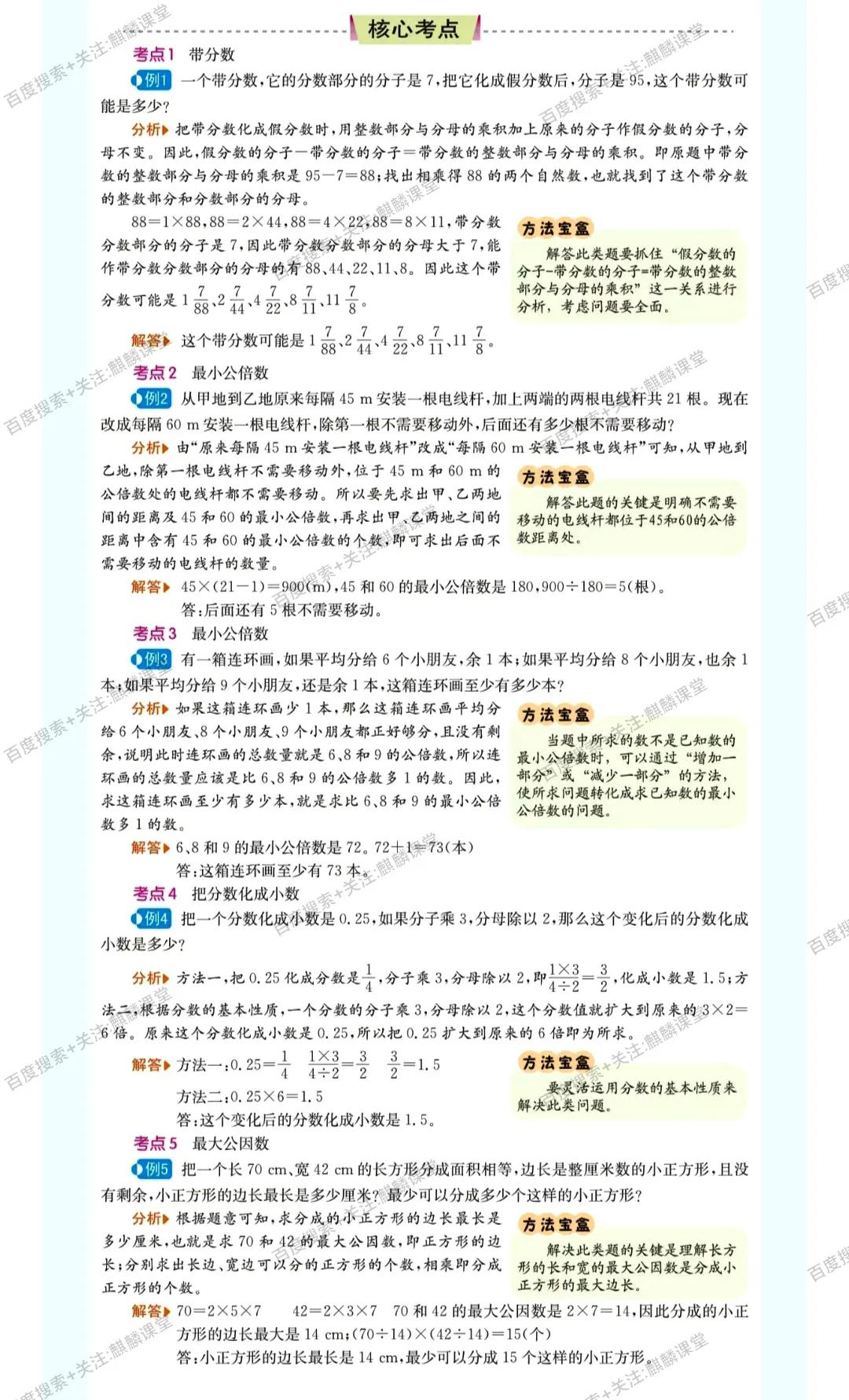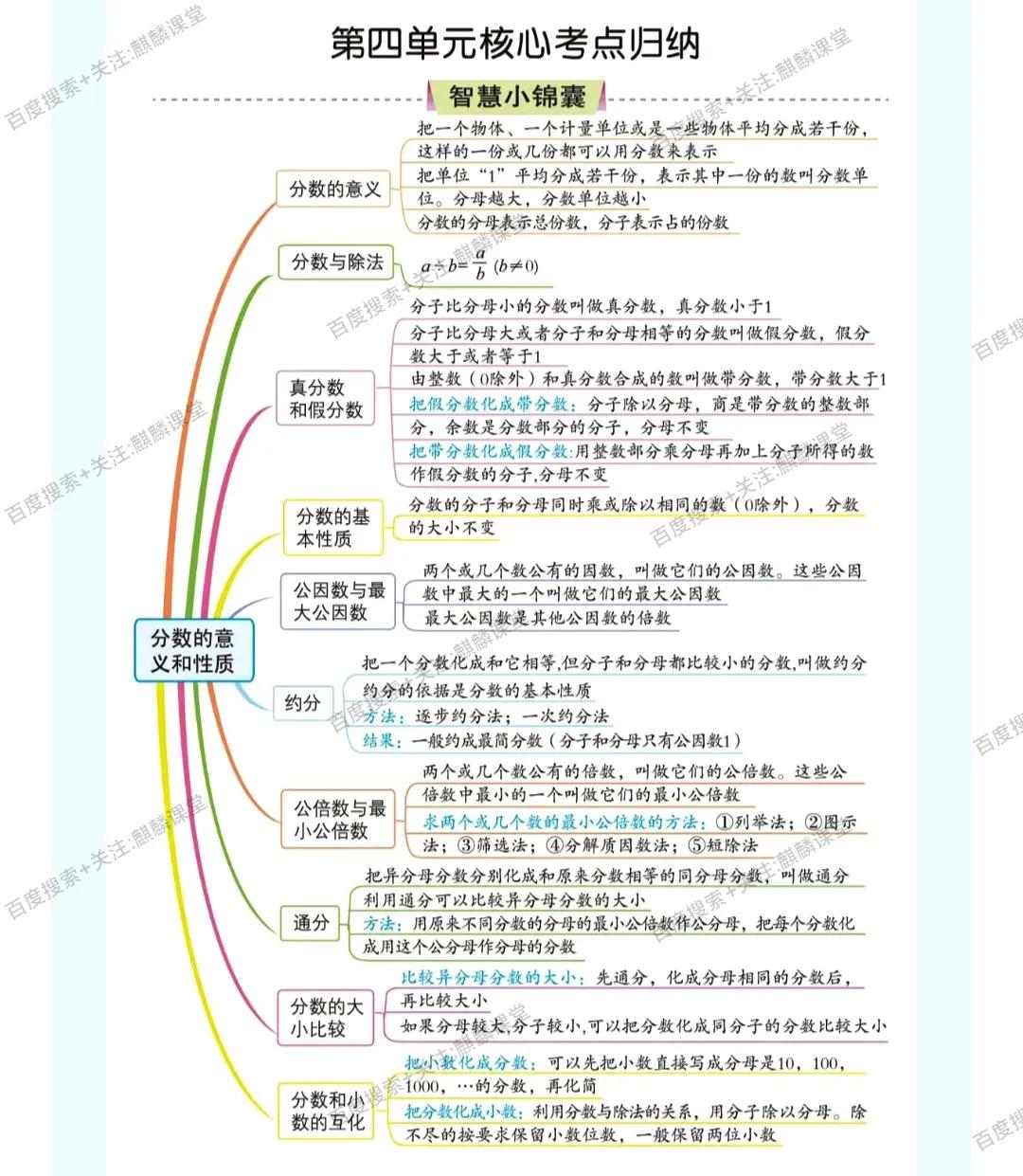 本單元是學生系統學習分數的開始。內容包括:分數的意義、分數與除法的關系,真分數與假分數,分數的基本性質,最大公因數與約分,最小公倍數與通分及分數與小數的互化。