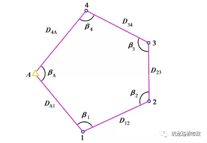 各內角的改正數之和應等于角度閉合差,但符號相反,即∑Vβ= –fβ。改正后的各內角值之和應等于理論值,即∑βi=(n-2)·180°。