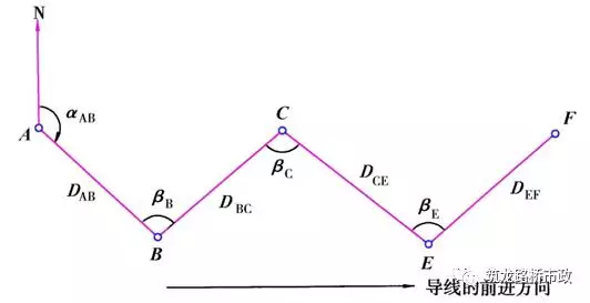 導線測量是平面控制測量的一種方法。所謂導線就是由測區內選定的控制點組成的連續折線,見右圖所示。