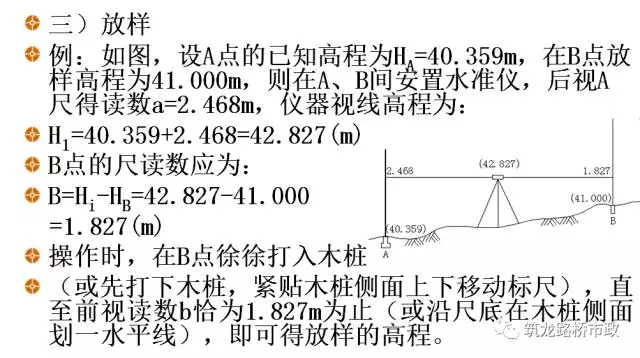 一)要點:根據已知高程點,用水準測量的方法進行。