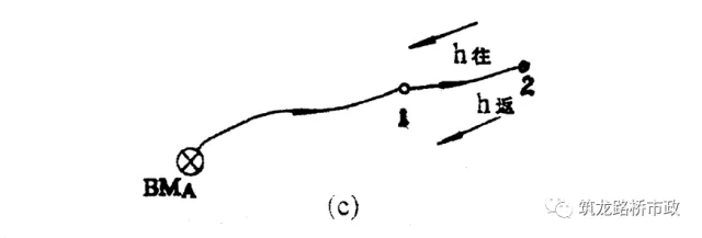 如圖(c),從一個已知高程的水準點BMA出發,沿一條路線進行水準測量,依次測定若干個待定高程的水準點1、2、…,最后既不回到起始水準點,也不附合到另一個已知高程的水準點上,稱為支水準路線。
