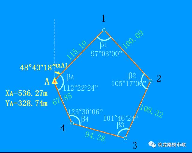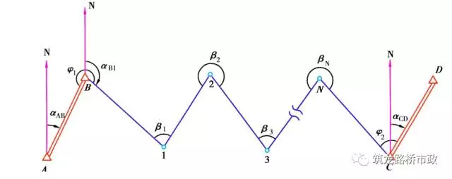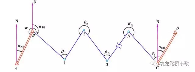 為了計算導線點的坐標,首先應推算出導線各邊的坐標方位角(以下簡稱方位角)。