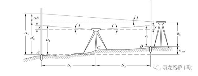 c 為地球曲率差。當儀器距后、前標尺的距離相等時,可消除地球曲率對高差的影響。