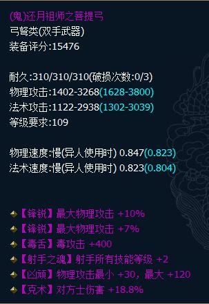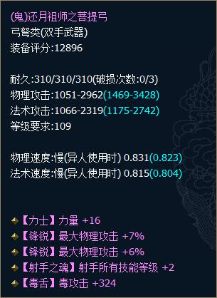 固定雙鋒銳+力量+技能的109雙手弓: