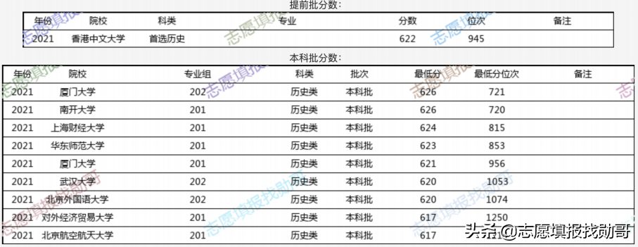 下圖為廣東省2021年數據,香港中文大學最低位次為945位,與廈大,武漢大學的錄取分相當。