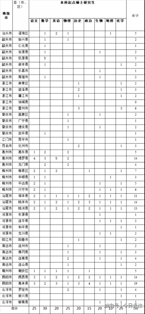 二、2023年粵東粵西粵北地區中小學教師專項招生計劃: