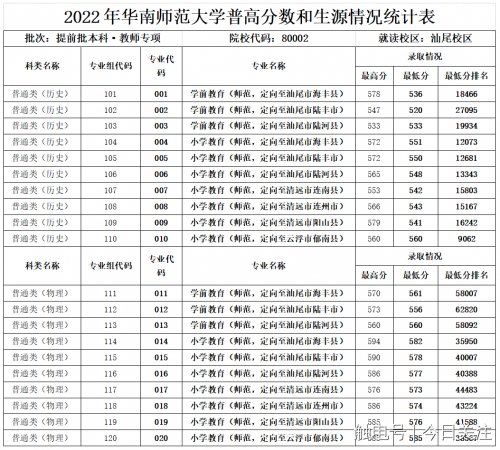本科層次專項計劃在廣東省提前批教師專項批次錄取,采取平行志愿的形式。我校往年均在第一志愿考生中完成,生源情況較理想,2022年各專業組錄取最低排位詳見下表。