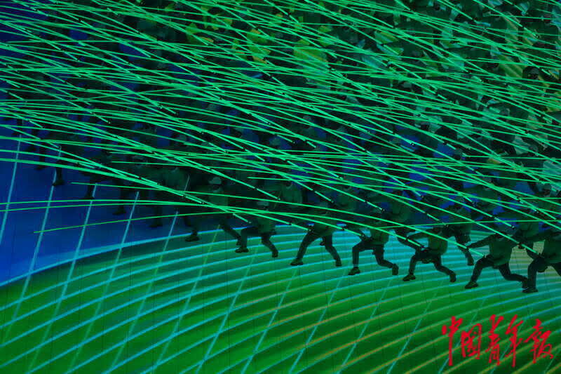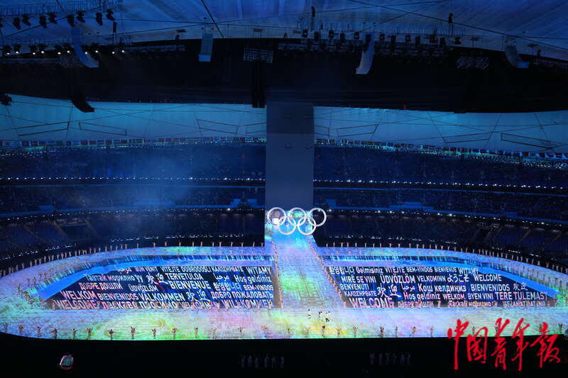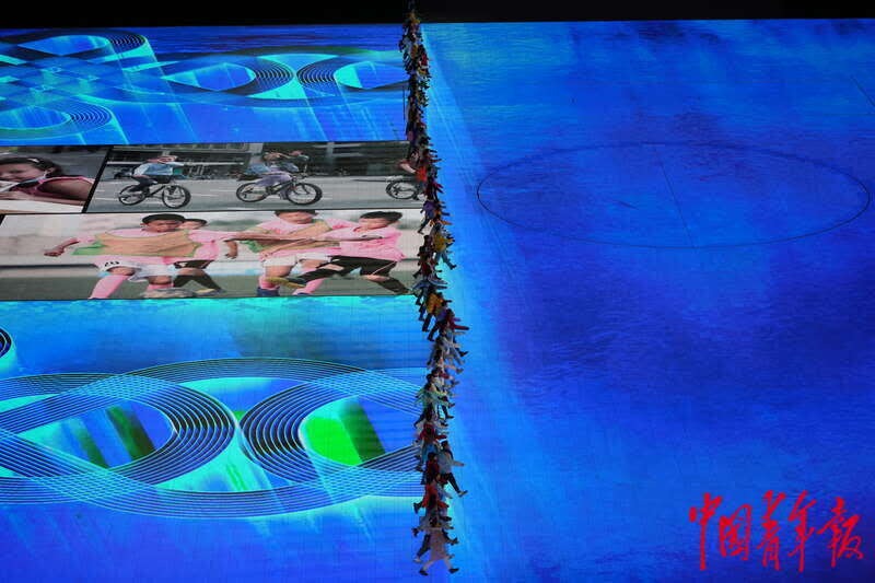 2月4日晚,第二十四屆冬季奧林匹克運動會開幕式在北京國家體育場舉行。《致敬人民》環節,76名中國大學生和外國留學生走上舞臺,走過由300多張照片匯成的影像長河。中青報·中青網記者 李雋輝/攝
