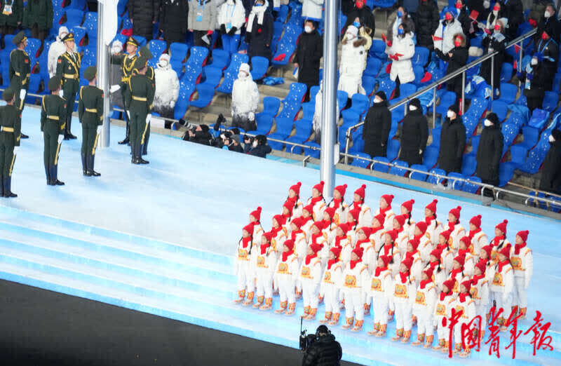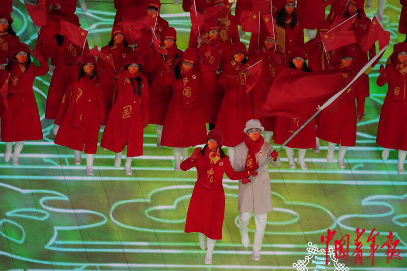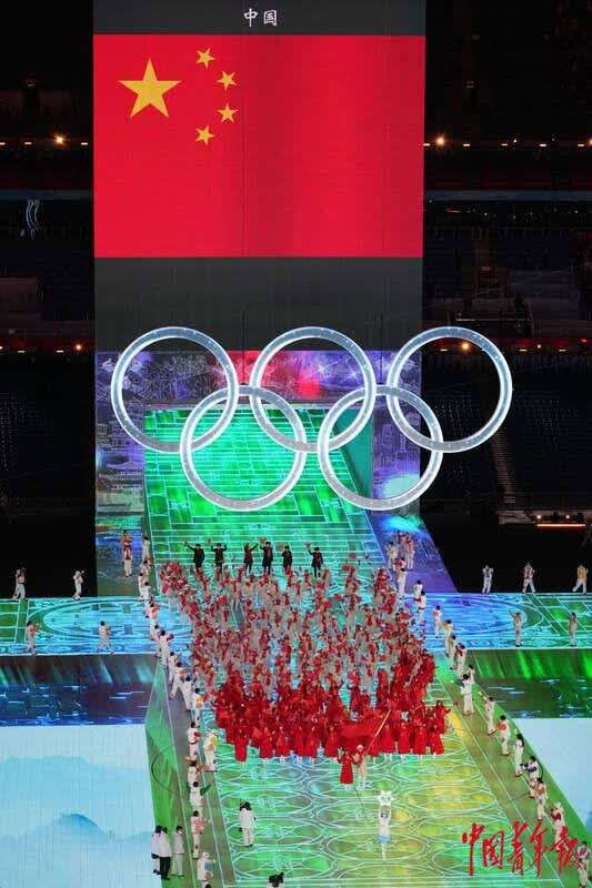 2月4日晚,第二十四屆冬季奧林匹克運動會開幕式在北京國家體育場舉行,中國代表團入場。中青報·中青網記者 李雋輝/攝