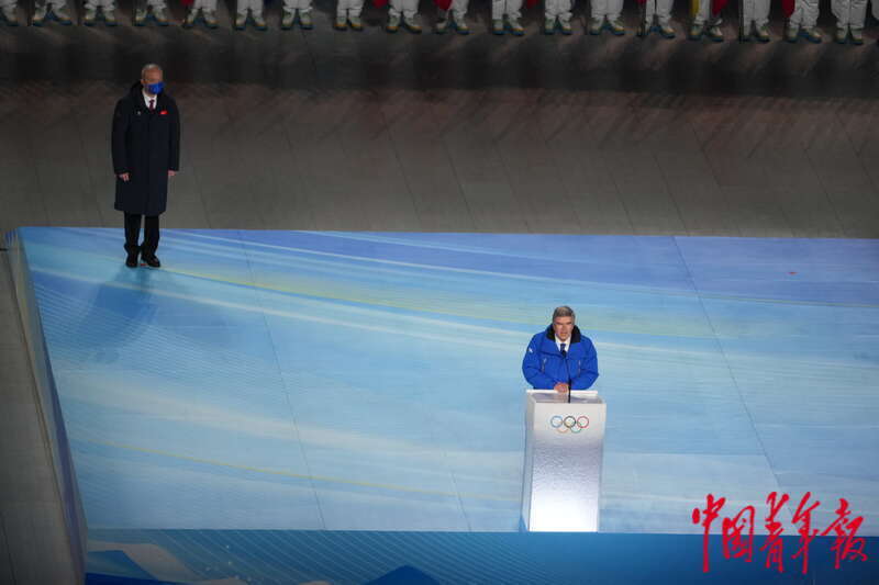 2月4日晚,第二十四屆冬季奧林匹克運動會開幕式在北京國家體育場舉行。國際奧委會主席巴赫講話。中青報·中青網記者 李雋輝/攝