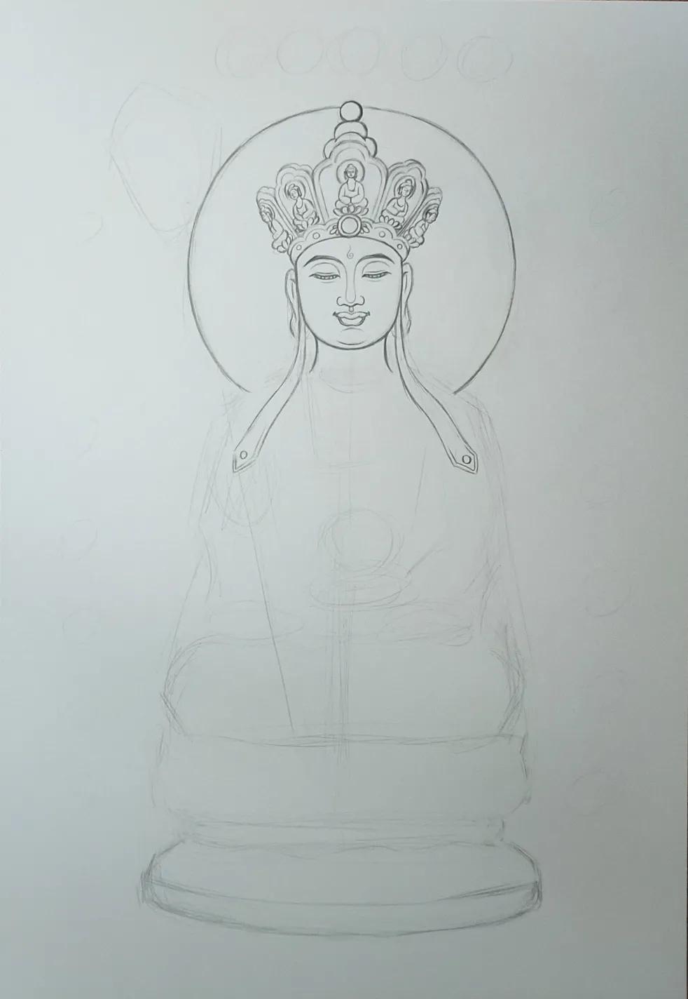 4 服飾也好難畫,我是照著從淘寶搜索的雕塑菩薩像畫的。