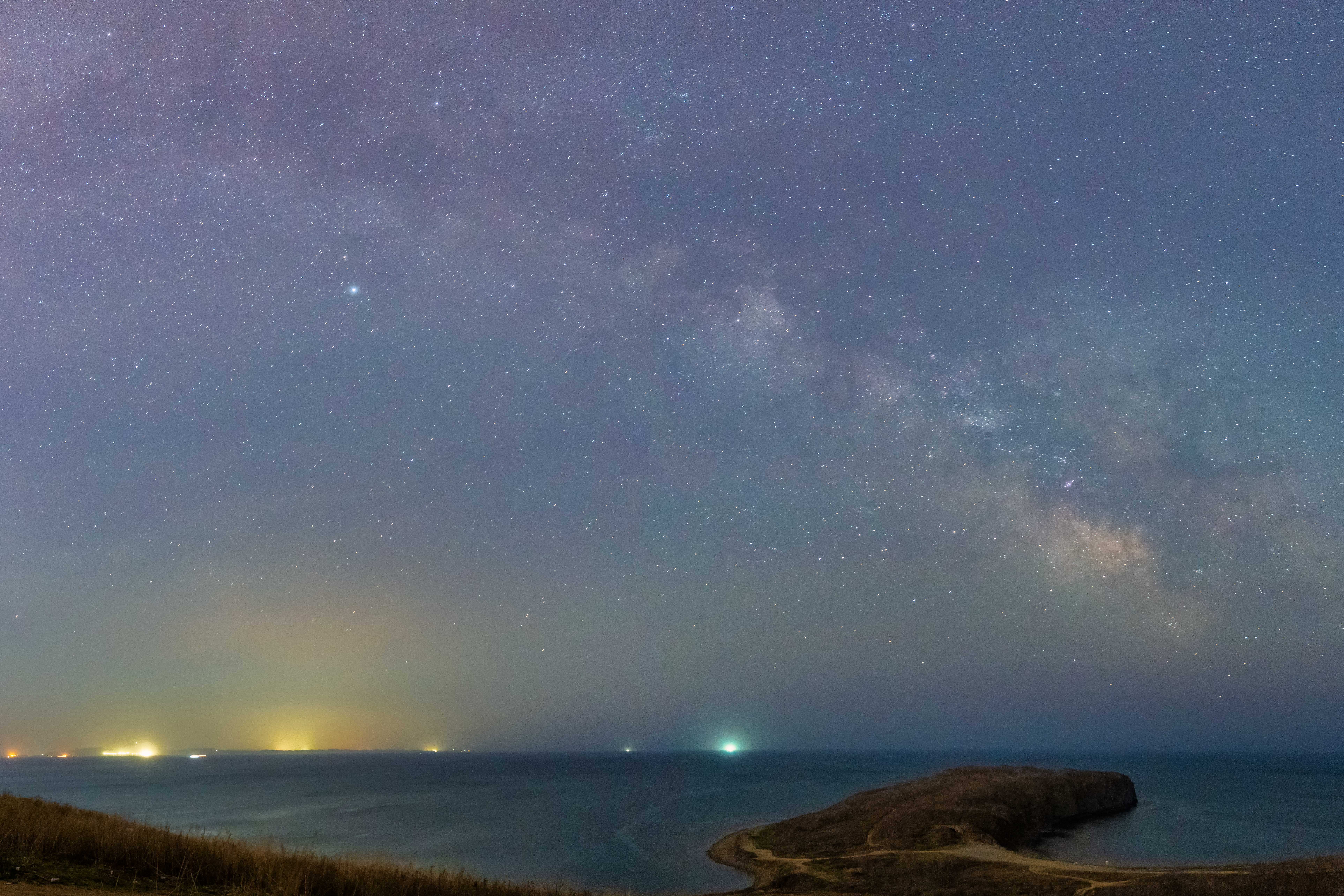 這是4月22日拍攝的俄羅斯符拉迪沃斯托克市切爾尼紹夫灣上空的銀河。 新華社發(郭飛洲攝)