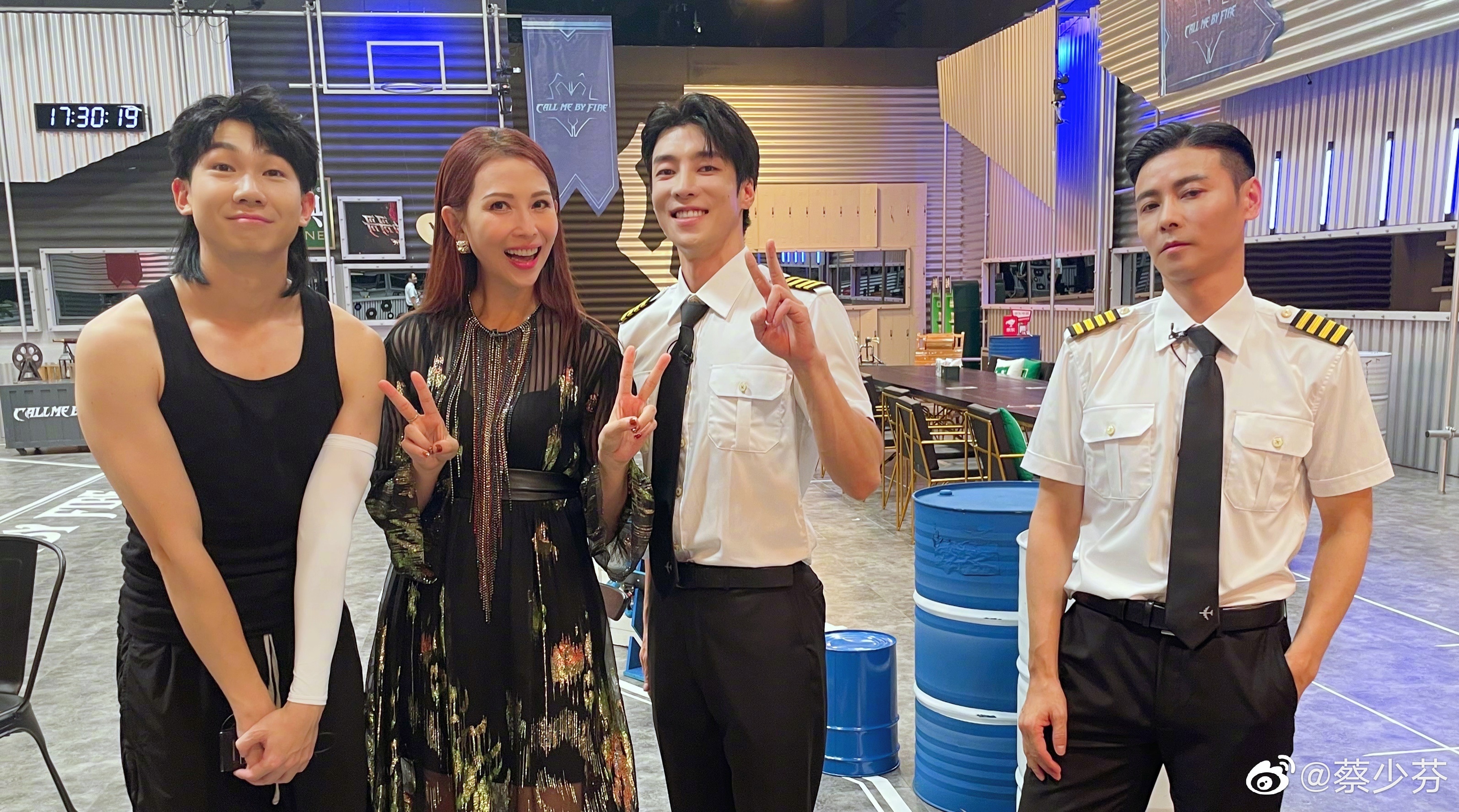“哥哥”五公結束后,蔡少芬曬出了“全家福”。(左起:白舉綱、蔡少芬、高瀚宇、張晉)