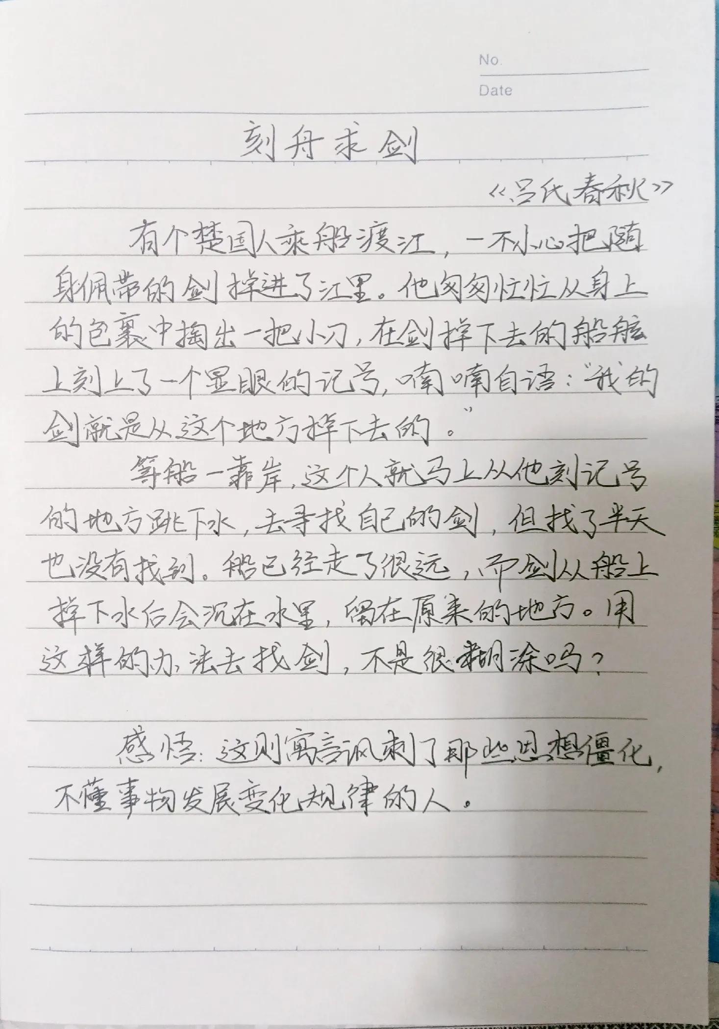 導讀在家伺候兩個孩子網課,閑暇時間抄些三年級必讀的中國古代寓言故事,練字的同時與孩子共勉吧。第5天。中國古代寓言故事《刻舟求劍》
