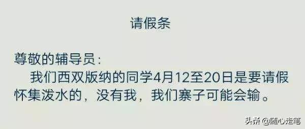 導讀請假秘籍你是不是也因為每次請假找不到理由!而頭疼!那我想告訴你,你的想象力還不夠豐富。什么頭疼腦熱,姥姥去世,爺爺住院這樣最低級的理由。你就不要用了,因為那會直接被無視。世界這么大,我想出去看看。這個