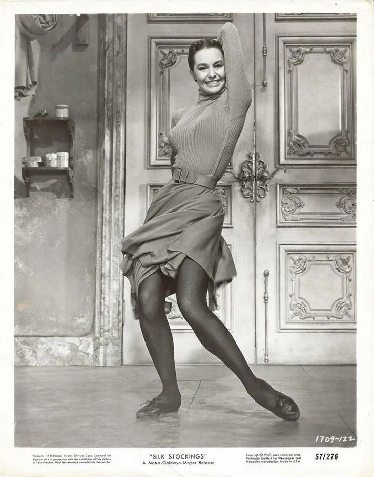 緊接著喜劇片《玻璃絲襪》里,我們看到充滿力量感的美腿駕馭絲襪也很好看。美國舞蹈演員Cyd Charisse的優雅獨舞魅力無限,在絲襪包裹下的一雙芭蕾腿備受矚目,就連電影公司都曾為她的美腿購買達100萬美元的保險!