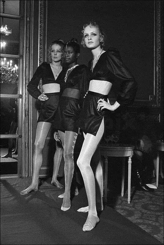 而黑色絲襪的流行還要追溯到60年代攝影師Man ray和模特Twiggy創造的“瘦美時代”。在Twiggy之前的模特體態都是健康自然美的,而在“瘦美時代”,黑絲在很大程度上如同束腰一般,成為從男性視角出發,改變女性身體的強權審美。