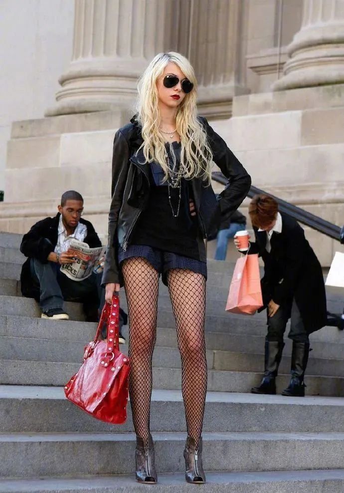 黑絲“顯瘦”的流行也延續到了21世紀初期,爆紅超模Kate Moss常常穿著黑絲出入夜場。