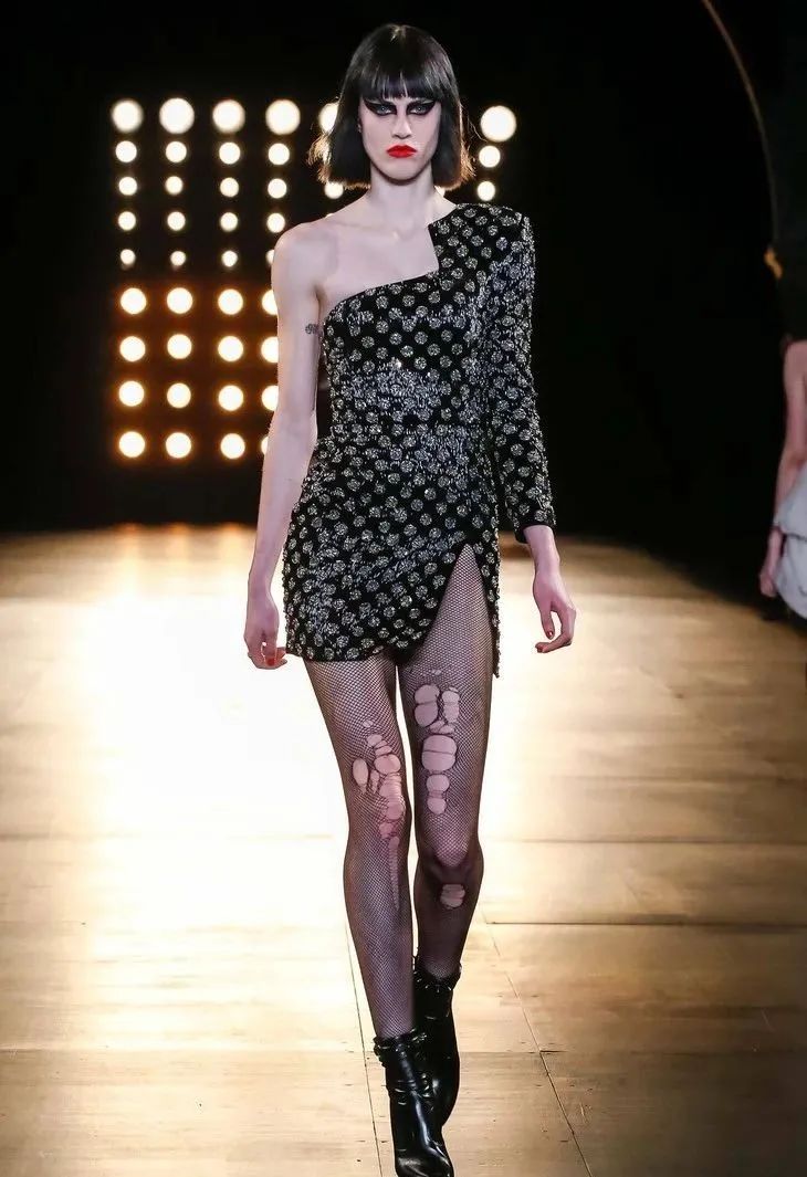 Saint Laurent 2015秋冬系列秀場上的麻豆更是一個個都穿上了破洞絲襪、漁網絲襪……她們是叛逆的化身。