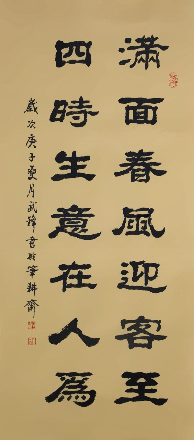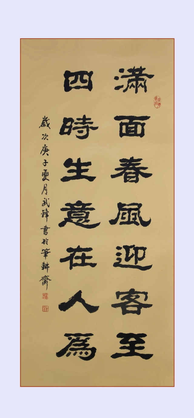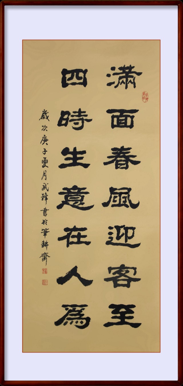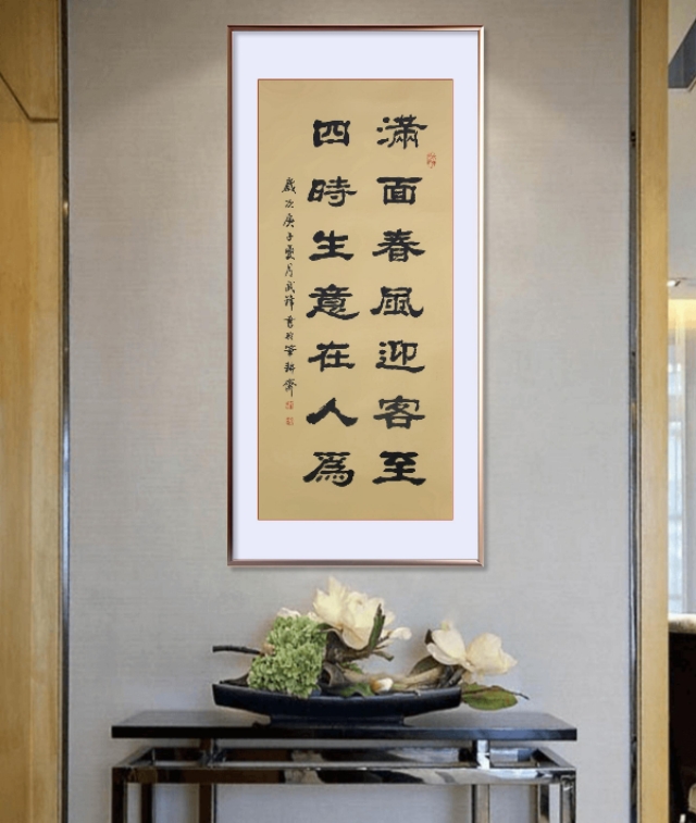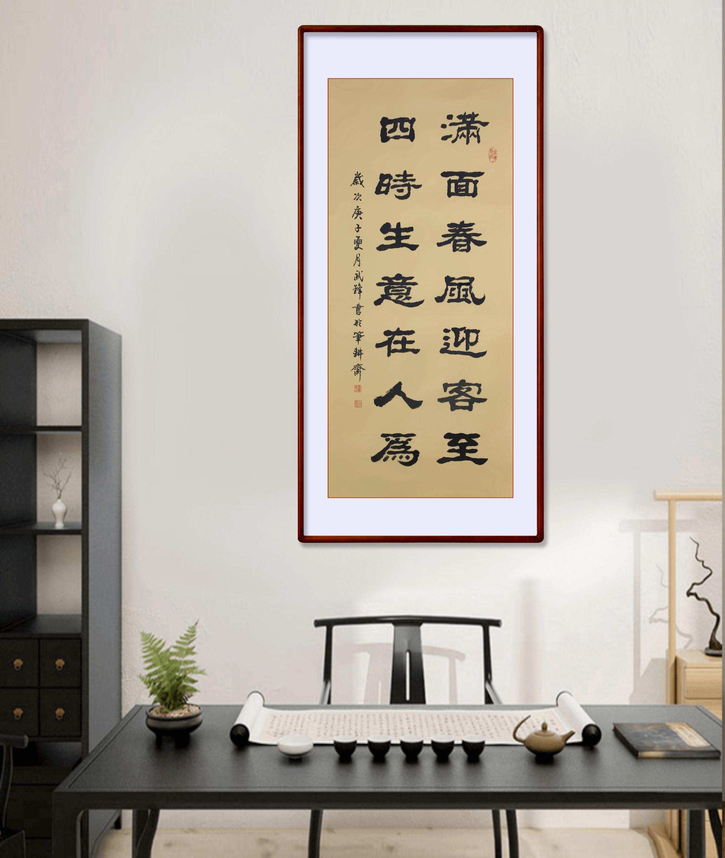 本書法用仿古灑金宣紙書寫,尺八屏對裁(116X53厘米)。