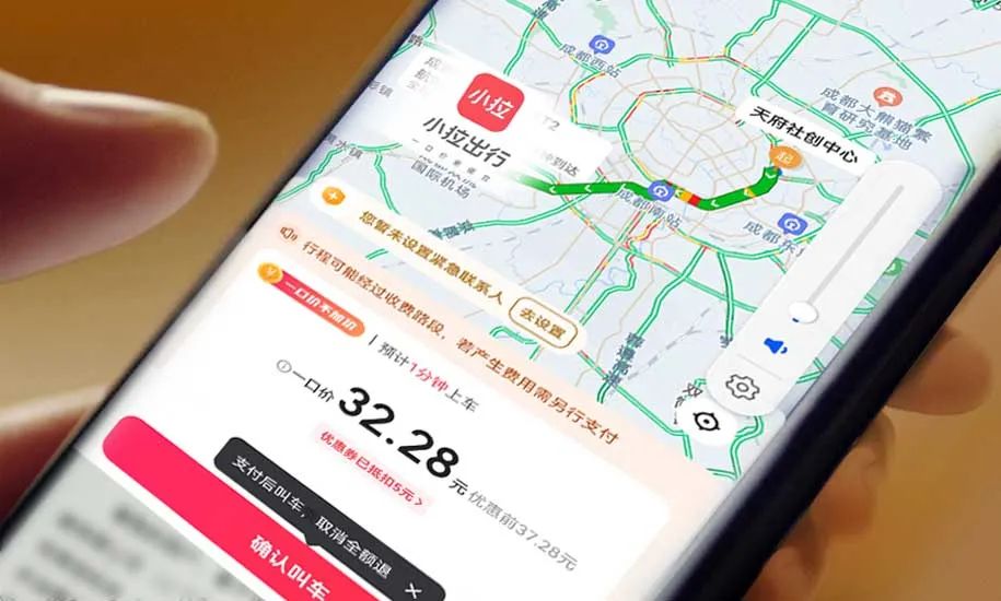 小拉出行主打價格“優惠”,主要在成都、福州、東莞等城市開展業務。以成都為例,小拉的起步價為7.7元,滴滴則要9元。