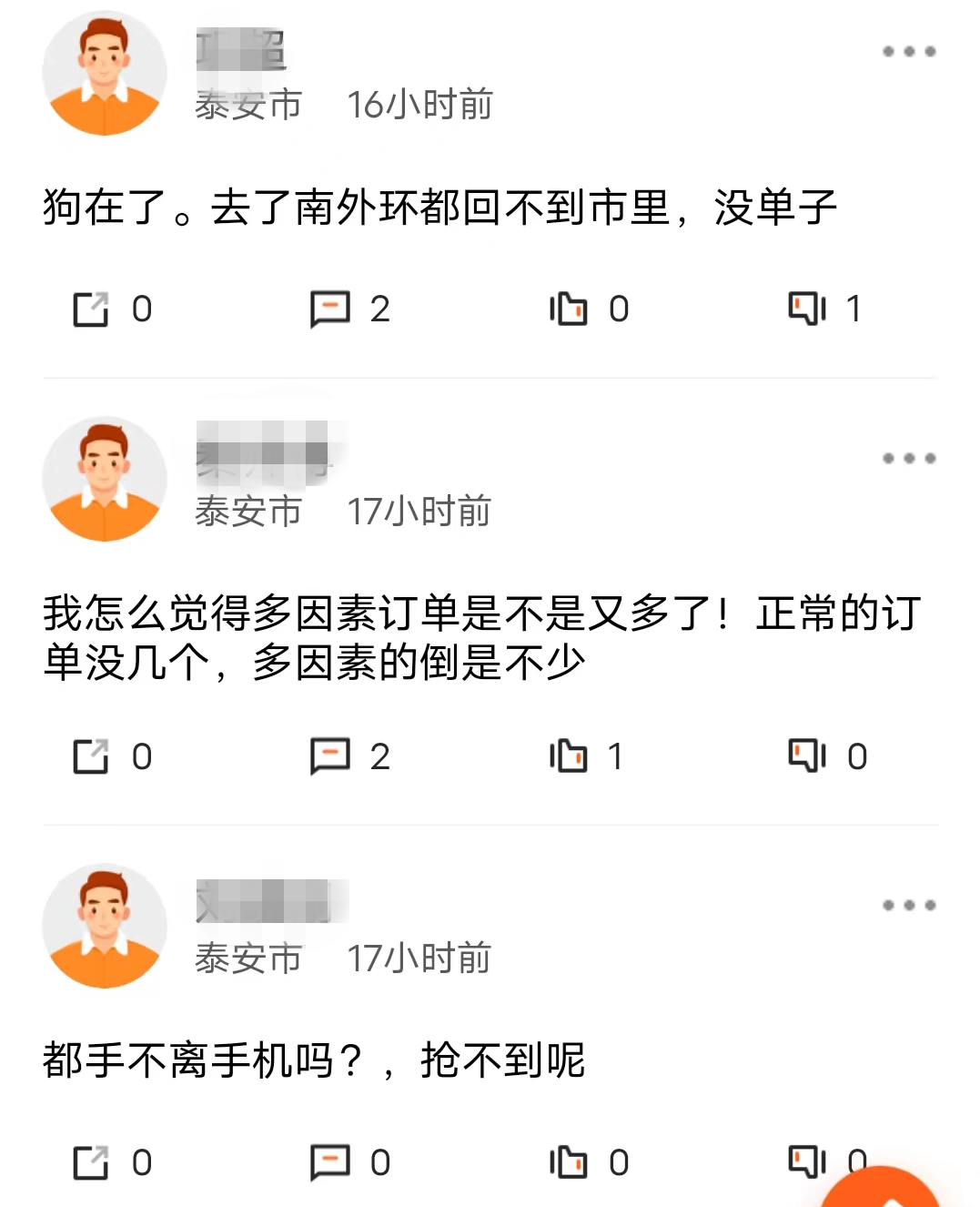 平臺司機在司機社區抱怨沒有訂單,圖片來源:受訪者供圖