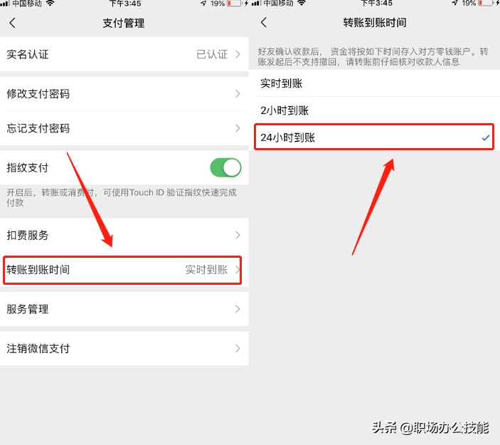 第一步:我們可以點擊微信錢包右上角進入支付管理頁面,然后點擊轉賬時間,把實時到賬改為24小時,這樣設置,即使對方收款了,錢也會延遲到賬。