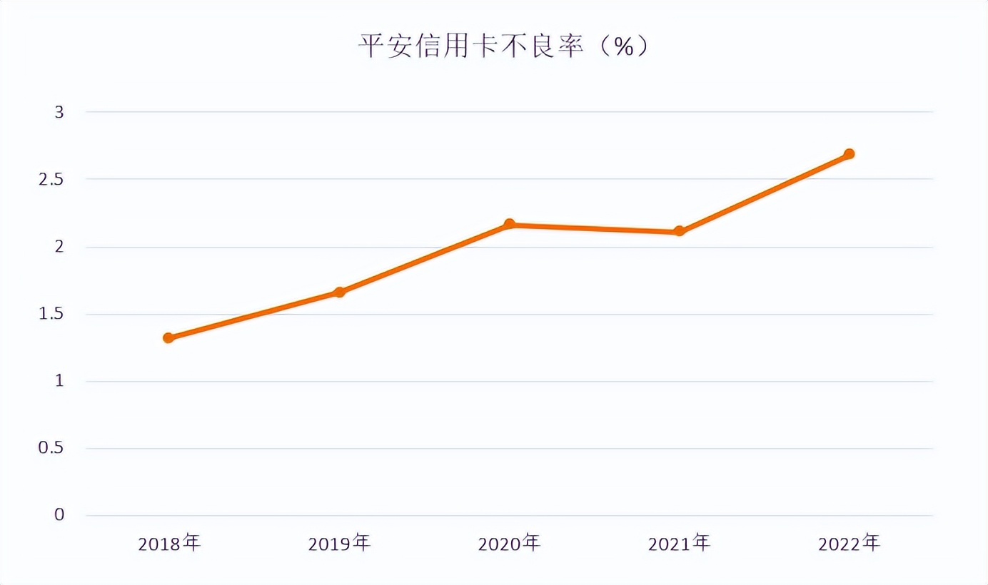平安信用卡應收賬款不良率為2.68%,同比增長0.57個百分點。
