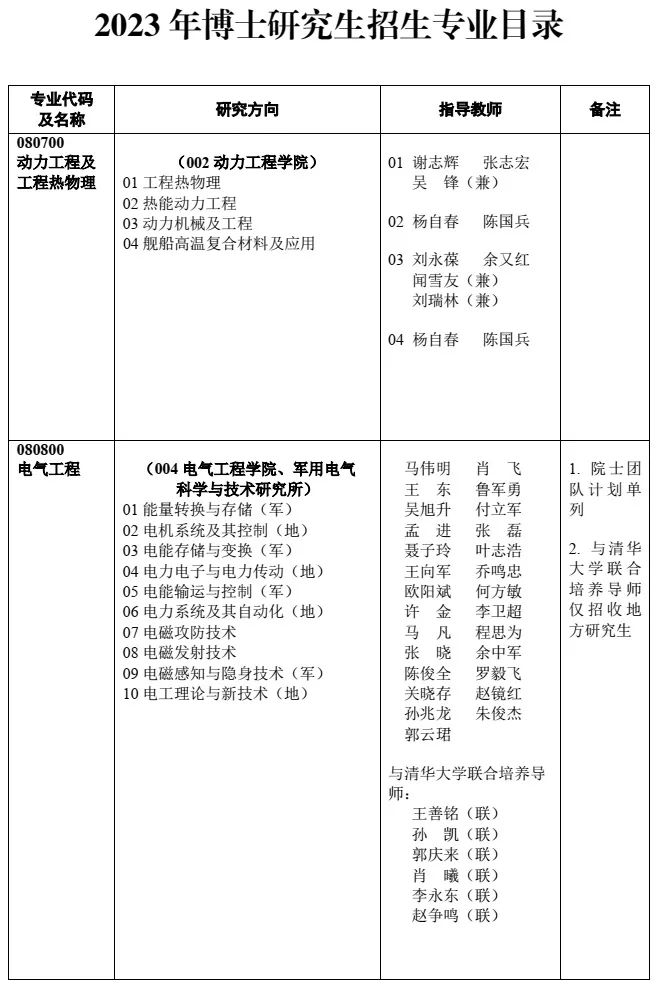我校2023年秋季入學博士研究生招生采取“申請-考核”方式,擬招收軍隊博士研究生2名(限軍隊在職干部或委任制文職人員),地方博士研究生27名。招生專業目錄見附表。