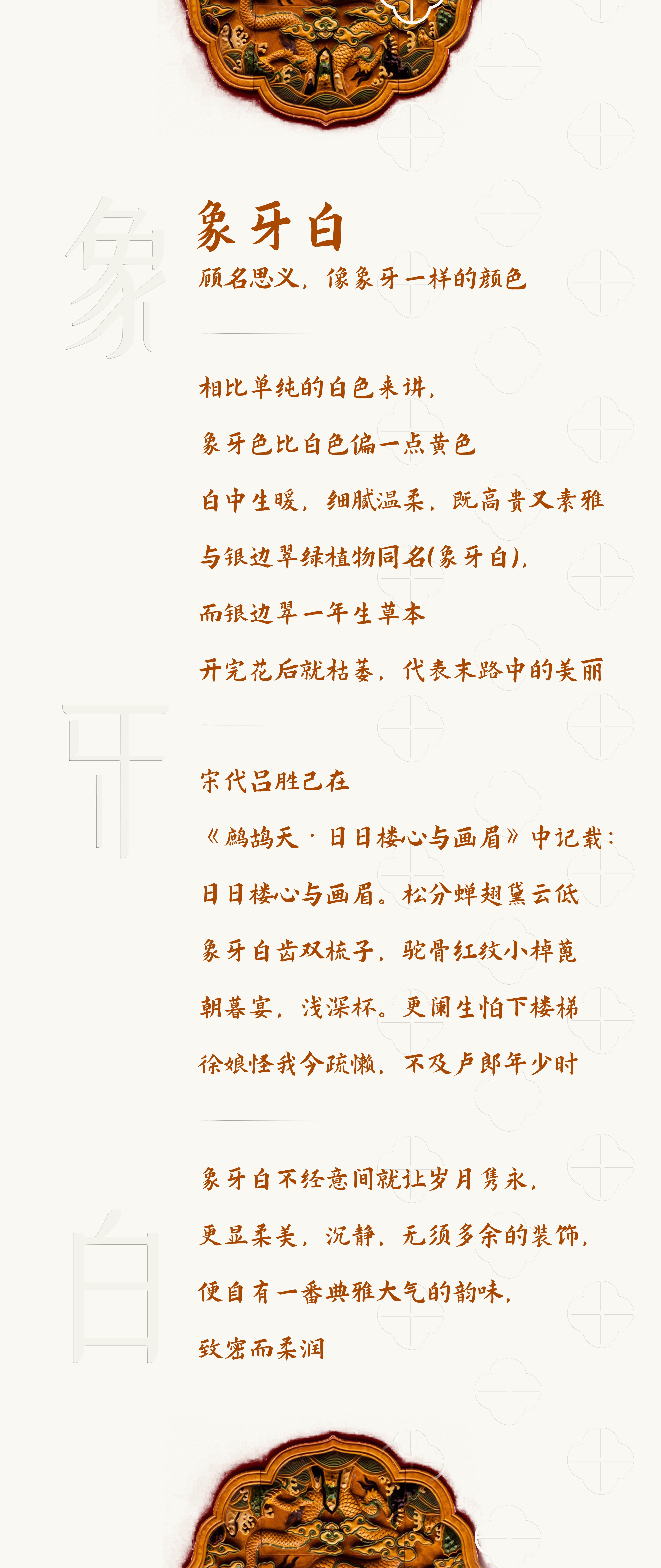 象牙白是什么顏色 暖色系顏色大全 發布者:陳龍明 2023-07-02 導讀象牙白,像象牙一樣白的顏色,白中生暖,高貴又素雅! 象牙白,像象牙一樣白的顏色,白中生暖,高貴又素雅! 免責聲明:本文章由會員“陳龍明”發布如果文章侵權,請聯系我們處理,本站僅提供信息存儲空間服務如因作品內容、版權和其他問題請于本站聯系 上一篇:光子嫩膚多久做一次 光子嫩膚5年后的變化 下一篇:額是什么意思 額表示額頭 猜你喜歡 櫻木花道圖片 櫻木花道經典圖片 程門立雪的主人公是誰 程門立雪的故事 Answers是什么意思(complete the cross 目不暇接的意思 時尚品牌-大牌云集 mode是什么意思 手表上mode什么意思 淡豆豉的功效與作用 淡豆豉的神奇功效 cnc是什么意思 CNC技術的歷史 種植牙的利與弊 種植牙利與弊知多少 最新文章 社會實踐活動內容 社會實踐活動有哪些 廣東省藥品交易中心 江西省藥品采購服 銅陵職業技術學院 銅陵智通職業技術學 遼寧交通高等專科學校 遼寧省交通專科 婺源旅游攻略 江西婺源旅游攻略 馬六甲海峽 馬六甲海峽一年收入 謹言by來自遠方 謹言 來自遠方 小說 誡子書原文及翻譯 誡子書諸葛亮