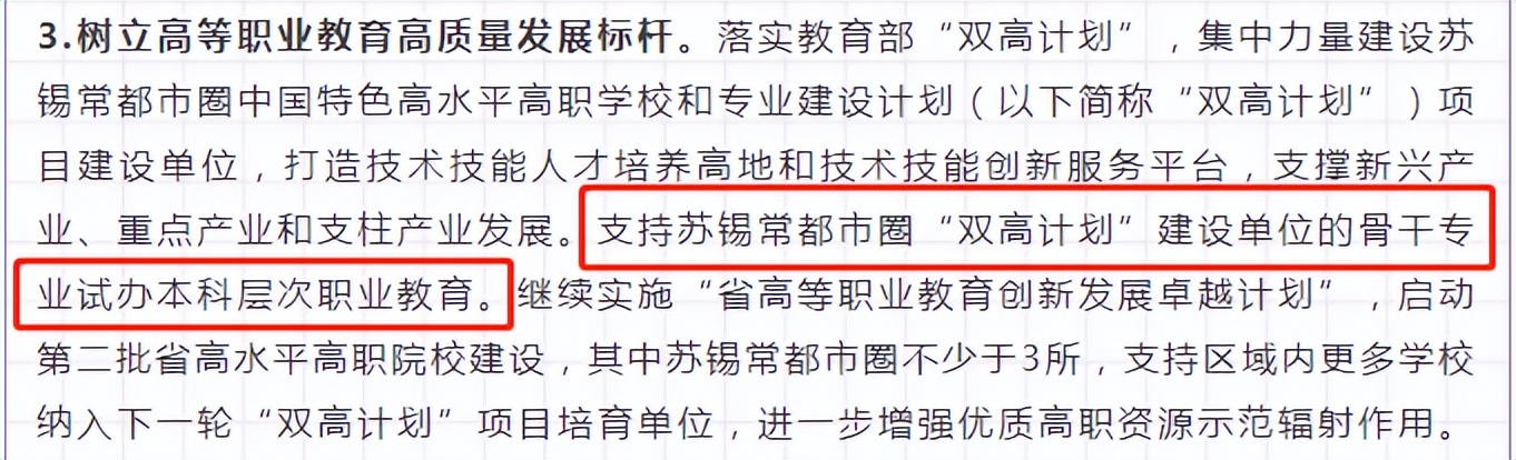 支持蘇錫常都市圈“雙高計劃”建設單位的骨干專業試辦本科層次職業教育。