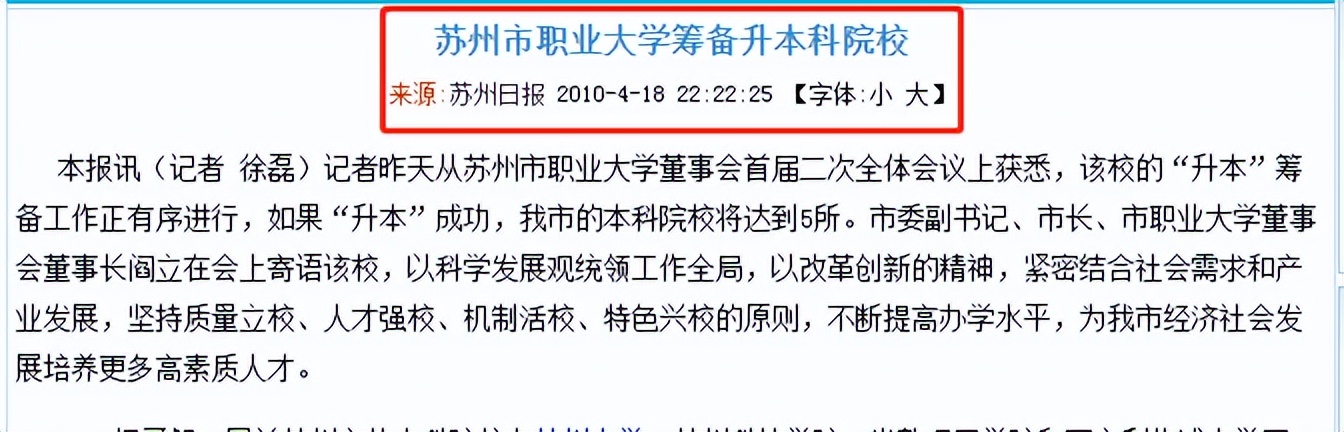 據悉,早在2008年12月蘇州市職業大學成立了董事會,積極籌備“升本”工作。
