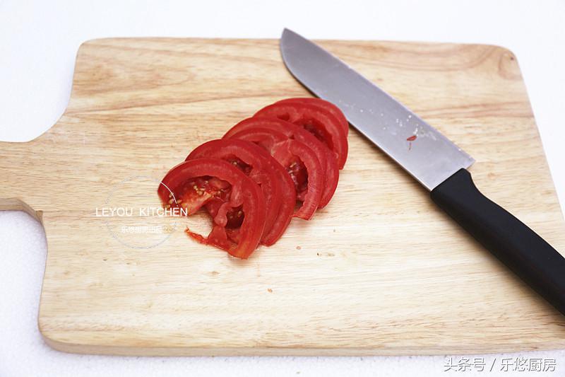 第四步:把西紅柿切成薄片。