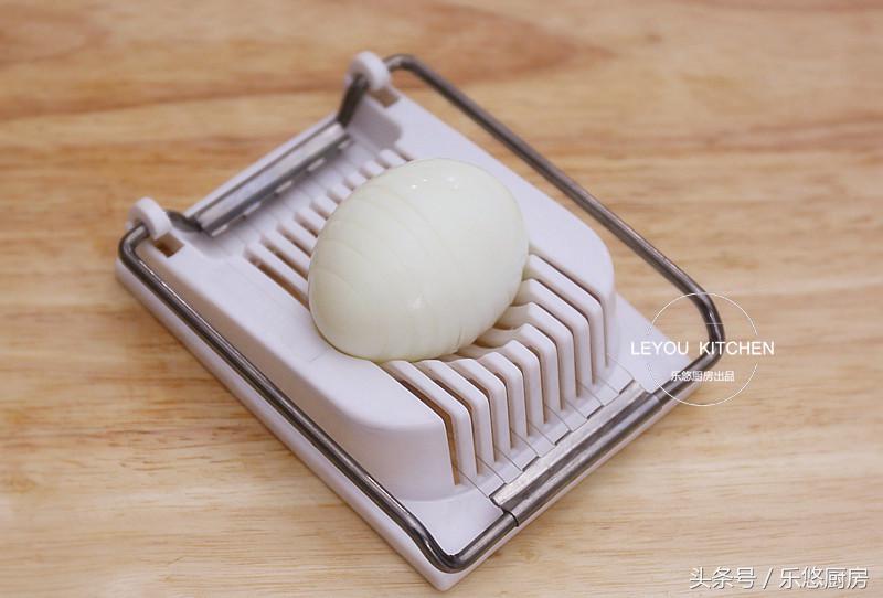 第三步:把雞蛋切成薄厚均勻的片,如圖。