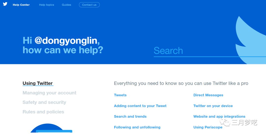 幫助中心地址:http://help.twitter.com/origin/en